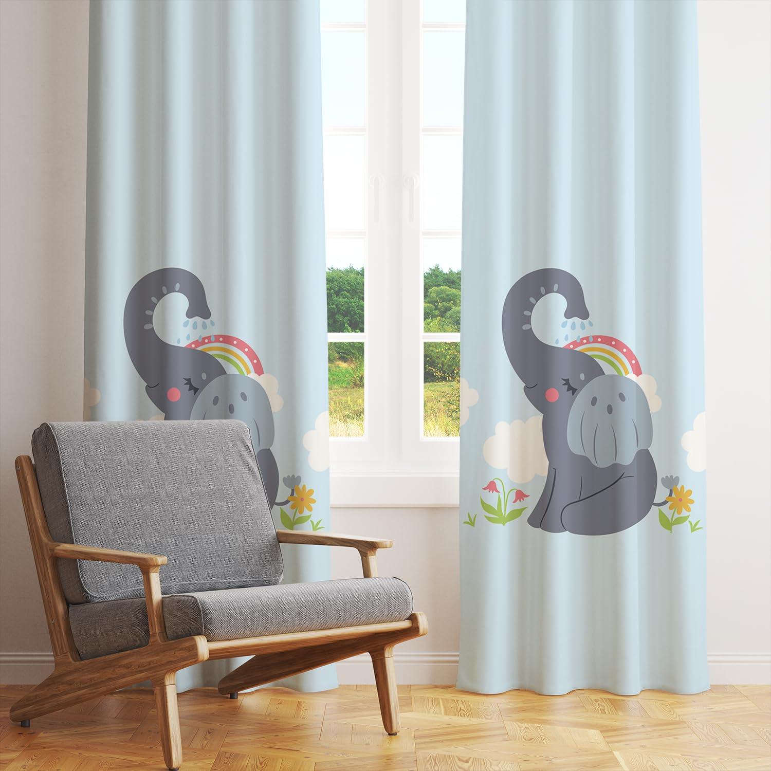 - Charming Design: Features a lovable elephant with a rainbow and flowers, adding a playful and calming vibe to kids' rooms.