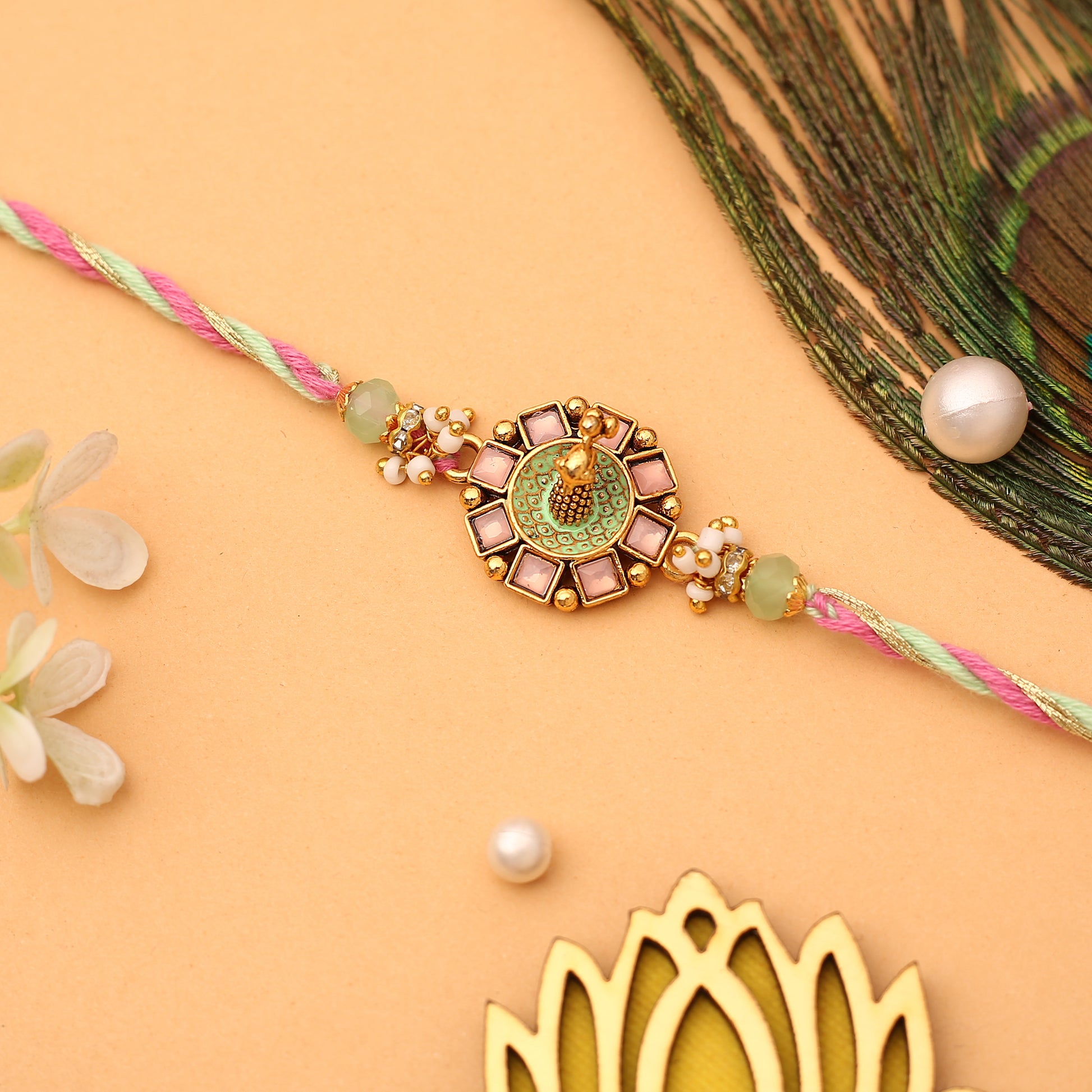 - 🌸 Handcrafted with Love: Each Rakhi is carefully made by skilled artisans, reflecting a blend of traditional craftsmanship and modern aesthetics. ✨ Premium Quality Materials: Made with skin-safe threads, beads, stones, and embellishments to ensure durability, comfort, and elegance.