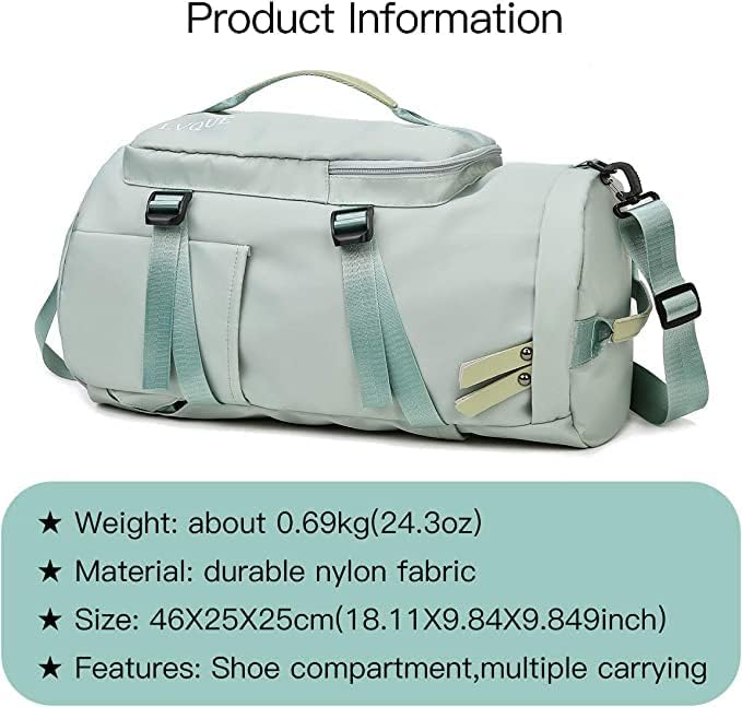 - Fashionable and functional: the design is stylish and the appearance is exquisite. Comes with wet and dry separator bag, separate shoe bag and side water cup bag. There are 6 uses, such as handbags, backpacks, shoulder bags etc. (shoulder straps can be hidden). Meet all your needs!